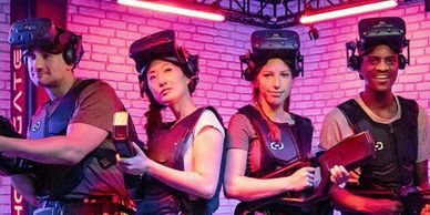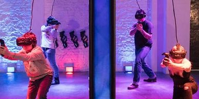 Planning a Stag, Hen, Sten or Birthday party then let’s make this easy! You need to see your group shoot past incoming monsters, dive past oncoming grenades and jump through virtual spaces! It’s fun, engaging and entertaining! Best of all you can enjoy drinks while you wait and watching is as hilarious as playing!